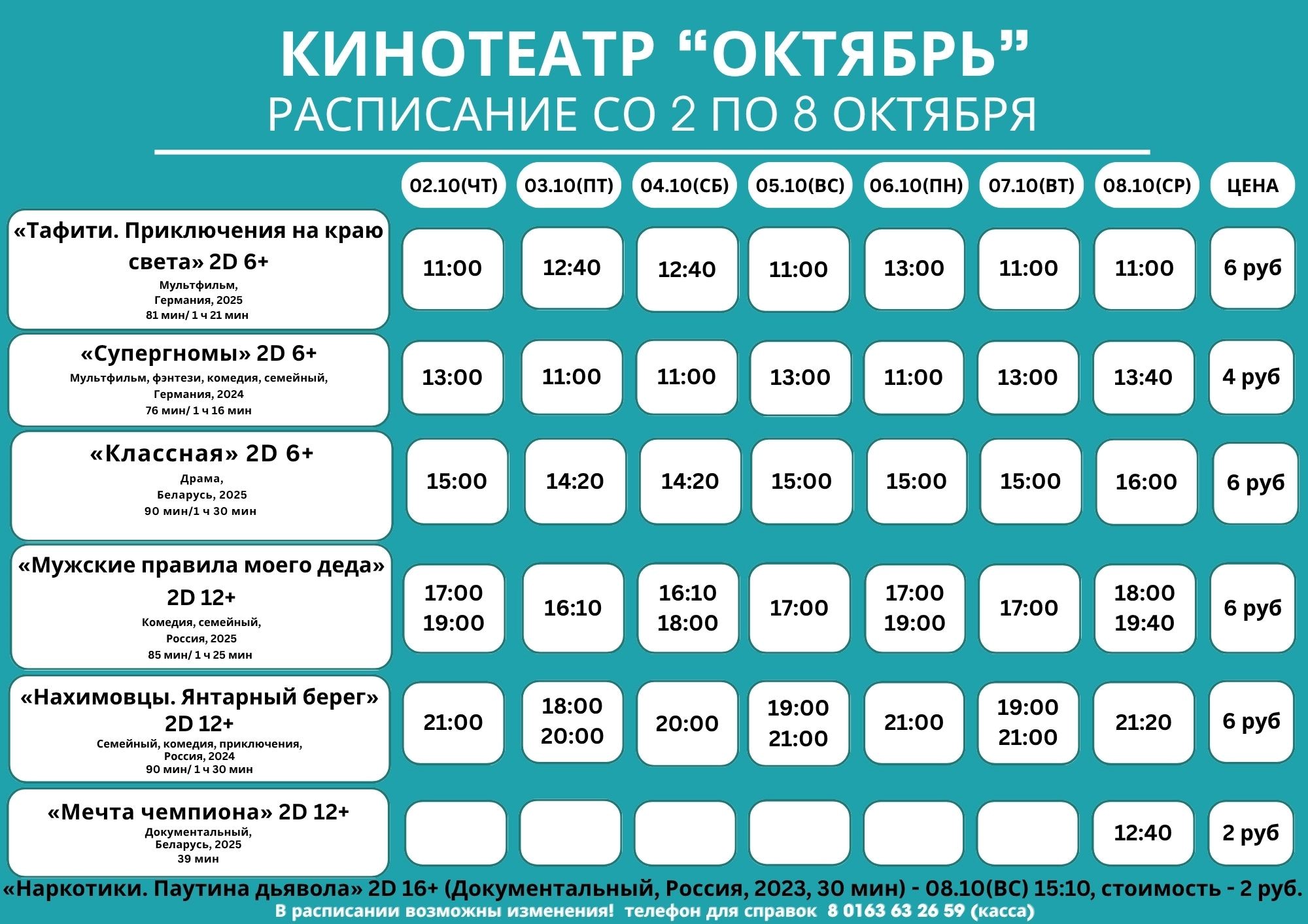 В расписании возможны изменения! Телефон для справок + 375 (163) 63-26-59 (касса)